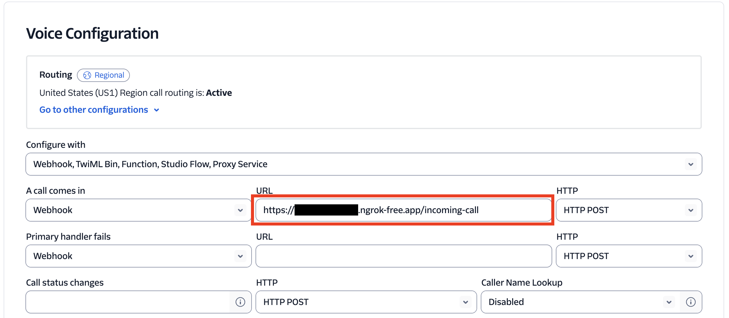 これにより、電話着信時にTwilioがngrokへリクエストを送信し、ローカルPCとの接続が確立されます。